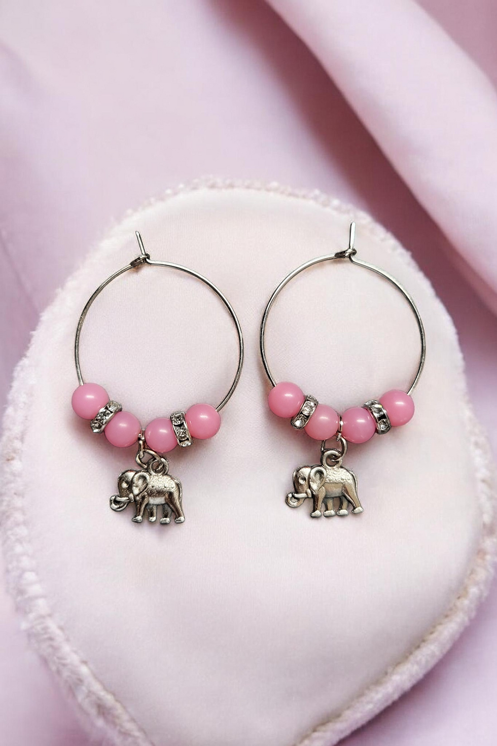 ✨ Boucles d’oreilles créoles éléphant rose – Bijou porte-bonheur & féminité